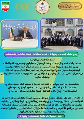 پیام تشکر فرماندار چایپاره از عوامل برگزاری هفته دولت در شهرستان