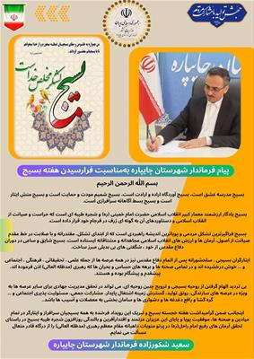 پیام فرماندار شهرستان چایپاره بهمناسبت فرارسیدن هفته بسیج