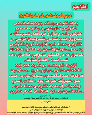 اطلاعیه کارگروه آرد و نان شهرستان چایپاره