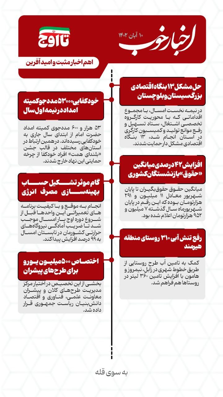 🔹اهم اخبار مثبت و امید آفرین پیرامون دولت سیزدهم (چهارشنبه 10 آبان ماه 1402)