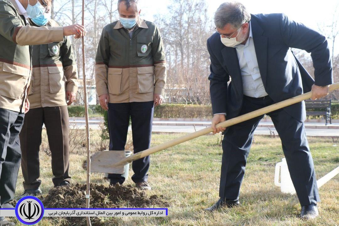 بهمناسبت گرامیداشت هفته منابع طبیعی، استاندار آذربایجان غربی دو اصله نهال میوه غرس کرد
