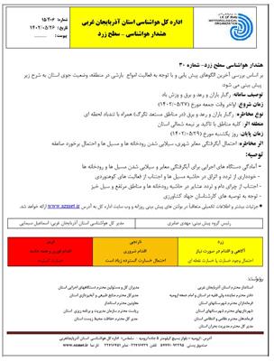 هشدار سطح زرد در خصوص حاکمیت شرایط ناپایدار جوی در استان