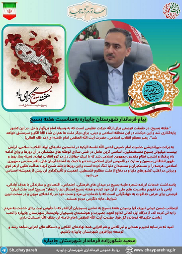 پیام فرماندار شهرستان چایپاره به مناسبت "هفته بسیج"