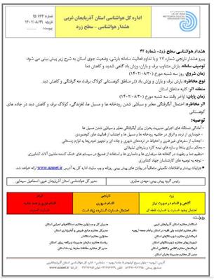 هشدار هواشناسی - سطح زرد شماره 42