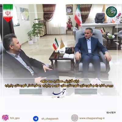 به گزارش روابط عمومی فرمانداری شهرستان چایپاره ؛ در راستای اهداف عالی دولت مردمی ، دولت سیزدهم به منظور ارتقاء سطح رضایتمندی عمومی از خدمات ادارات و نهادهای دولتی و عمومی شهرستان ، صبح امروز 1401/4/7 افشین سلیمانی رییس اداره راه و شهرسازی با حضور در دفتر سعید شکورزاده فرماندار شهرستان ، ضمن دیدار به ارائه گزارش عملکرد خود پرداختند.