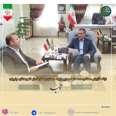 به گزارش روابط عمومی فرمانداری شهرستان چایپاره ؛ در راستای اهداف عالی دولت مردمی ، دولت سیزدهم به منظور ارتقاء سطح رضایتمندی عمومی از خدمات ادارات و نهادهای دولتی و عمومی شهرستان ، صبح امروز 1401/4/7 آقازاده مدیر بنیاد مسکن شهرستان با حضور در دفتر سعید شکورزاده فرماندار شهرستان ، ضمن دیدار به ارائه گزارش عملکرد خود پرداختند.