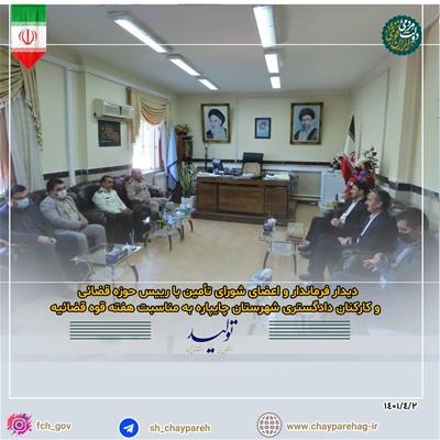 به گزارش روابط عمومی فرمانداری شهرستان چایپاره ؛ به مناسبت هفته قوه قضائیه و به منظور گرامیداشت یاد و خاطره آیتالله دکتر شهید بهشتی و 72 تن از یارانش،شکورزاده فرماندار شهرستان به همراه اعضای شورای تأمین با حضور در دادگستری شهرستان ضمن دیدار و گفتگوی با رییس ، قضات و کارکنان این حوزه با اهداء لوح سپاس و هدایایی از تلاش های ارزنده آقای سلطانی رییس محترم حوزه قضایی تجلیل نمودند