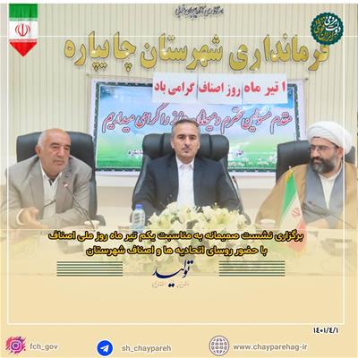 به گزارش روابط عمومی فرمانداری شهرستان چایپاره ؛ پیش از ظهر امروز1401/4/1 به مناسبت روز ملی اصناف، نشست صمیمی روسای اتحادیه ها و اصناف شهرستان با فرماندار ، امام جمعه و جمعی از مسئولان شهرستان در سالن جلسات فرمانداری برگزاری شد .