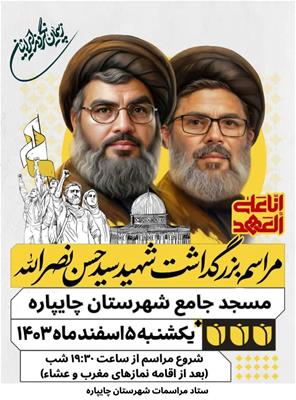 اطلاعیه مراســـم بزرگداشت و شام غریبان شهدای مقاومت شهید سید حسن نصرالله و شهید سید هاشم صفی الدین