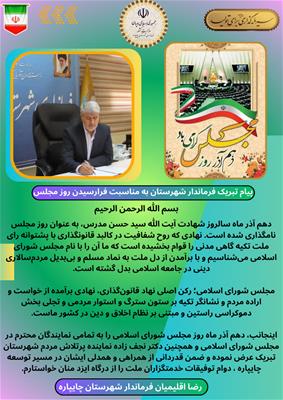 پیام تبریک فرماندار شهرستان چایپاره بهمناسبت فرارسیدن روز مجلس