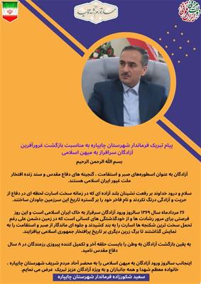 فرماندار شهرستان چایپاره ، به مناسبت سالروز بازگشت آزادگان در منزل جمعی از آزادگان شهرستان حضور یافت