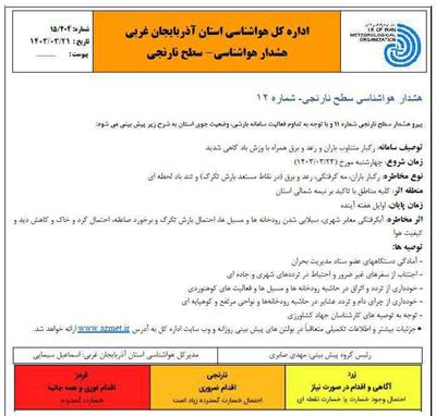 هشدار هواشناسی سطح نارنجی شماره 12