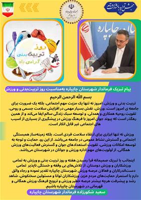 پیام فرماندار شهرستان چایپاره به مناسبت هفته تربیت بدنی و ورزش