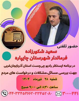 حضور تلفنی سعید شکورزاده فرماندار شهرستان چایپاره در برنامه ایستکلر رادیو چیچست استان آذربایجان غربی