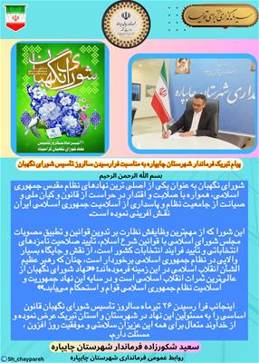 پیام تبریک فرماندار چایپاره به مناسبت فرارسیدن سالروز تأسیس شورای نگهبان