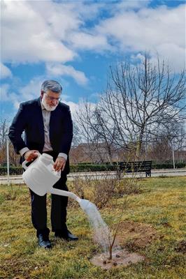 محمدصادق معتمدیان استاندار آذربایجانغربی به مناسبت روز درختکاری و آغاز هفته منابع طبیعی یک اصله نهال غرس کرد.