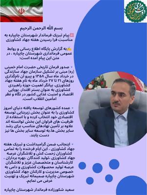 پیام تبریک فرماندار شهرستان چایپاره به مناسبت فرا رسیدن هفته جهاد کشاورزی