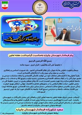 پیام فرماندار شهرستان چایپاره بهمناسبت گرامیداشت هفته تعاون
