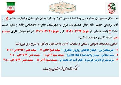 به گزارش روابط عمومی فرمانداری شهرستان چایپاره ؛ با دستور فرماندار شهرستان ، اعضای کارگروه آرد و نان شهرستان چایپاره به سرپرستی محسن دانیالی معاون فرماندار و به همراه مدیر جهاد کشاورزی، نماینده اداره صنعت ، معدن و تجارت ، رییس اتحادیه نانوایان با حضور در تعدادی از نانوایی های سطح شهرستان از نزدیک در جریان روند فعالیت خدماتی آنان قرار گرفتند.