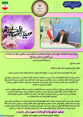 پیام تبریک فرماندار شهرستان چایپاره به مناسبت فرارسیدن سالروز ولادت زین العابدین امام سجاد(ع)