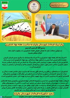 پیام تبریک فرماندار شهرستان چایپاره به‌مناسبت آغاز هفته جهاد کشاورزی