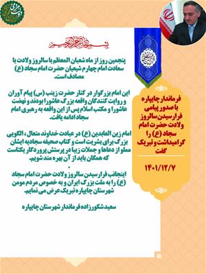 به گزارش روابط عمومی فرمانداری چایپاره، متن پیام سعید شکورزاده به شرح زیراست:
