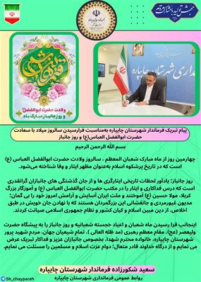 پیام تبریک فرماندار شهرستان چایپاره به مناسبت فرارسیدن سالروز ولادت حضرت عباس(ع) و روز جانباز