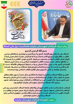 پیام تبریک فرماندار شهرستان چایپاره بهمناسبت روز ملی اصناف