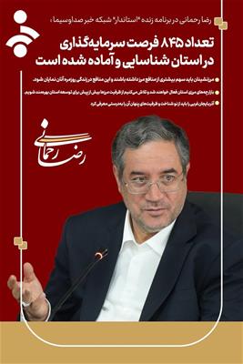 تعداد 845 فرصت سرمایهگذاری در استان شناسایی و آماده شده است- سه شنبه 20 خرداد 1404 ساعت 07:00