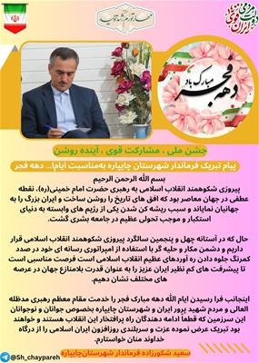 پیام تبریک فرماندار چایپاره به مناسبت ایام‌الله دهه فجر