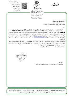 طرح حمایت از ازدواج متولدین دهه 60 ساکن در مناطق روستایی و شهری زیر 20 هزار نفر جمعیت