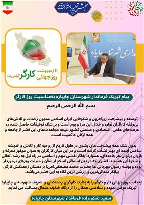 پیام تبریک فرماندار شهرستان چایپاره به‌مناسبت روز کارگر