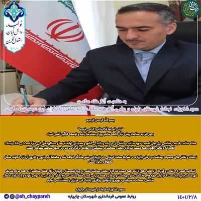 متن پیام سعید شکورزاده فرماندار شهرستان به شرح ذیل است