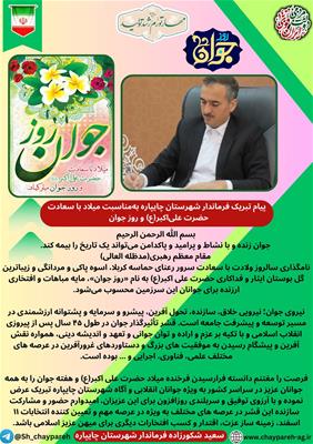 پیام تبریک فرماندار چایپاره بهمناسبت میلاد با سعادت حضرت علی اکبر(ع) و روز جوان