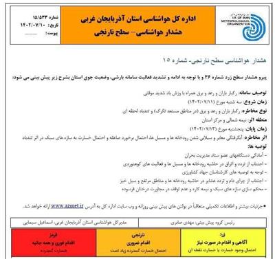 هشدار هواشناسی سطح نارنجی - شماره 15