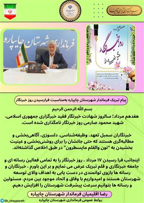 پیام تبریک فرماندار شهرستان چایپاره بهمناسبت فرارسیدن روز خبرنگار